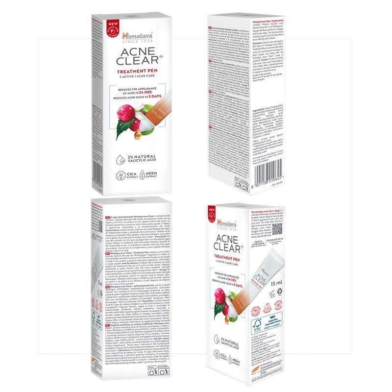 עט הטיפול Himalaya Acne Clear+ Treatment pen מכיל חומצה סליציאלית טבעית, המופקת משמן וינרגרין, בשילוב עם נים ועם סנטלה אסייאתית (CICA).