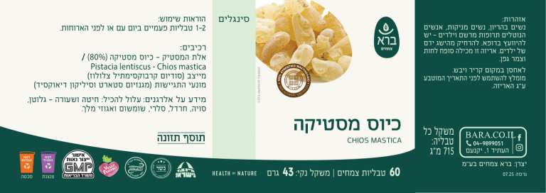 - אישורים: מיוצר ברישיון משרד הבריאות, עומד בתקן GMP