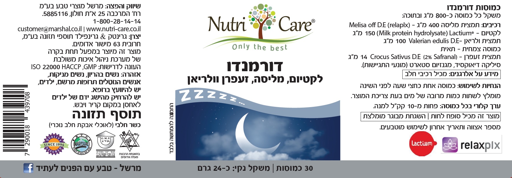 - אישורים: מיוצר ברישיון משרד הבריאות, עומד בתקן GMP