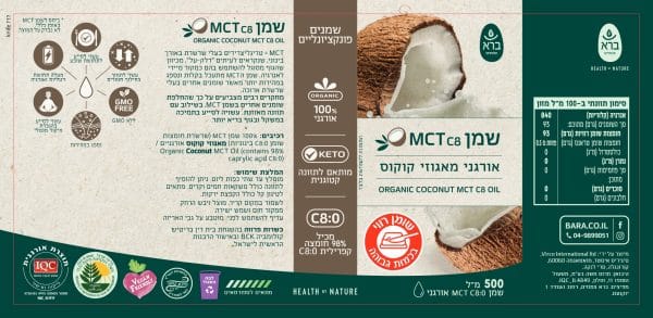 שמן MCT C8 אורגני מאגוזי קוקוס | ברא צמחים