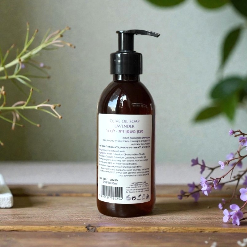 סבון לבנדר נוזלי טבעי הוא סבון עדין לעור המעניק לחות ואינו מייבש את העור.