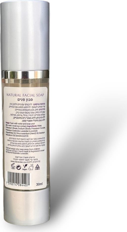 סבון הפנים מתאים מאוד לעור רגיש ועדין ומקל משמעותית על תופעות של עור רגיש, אדמומיות ויובש בזכות הרכב של שמנים צמחיים ושמנים אתרים מעולים.
