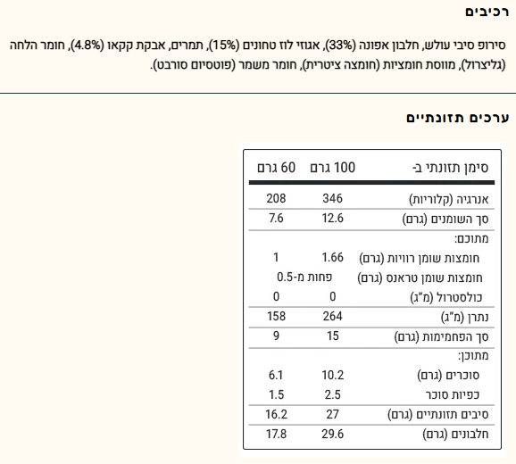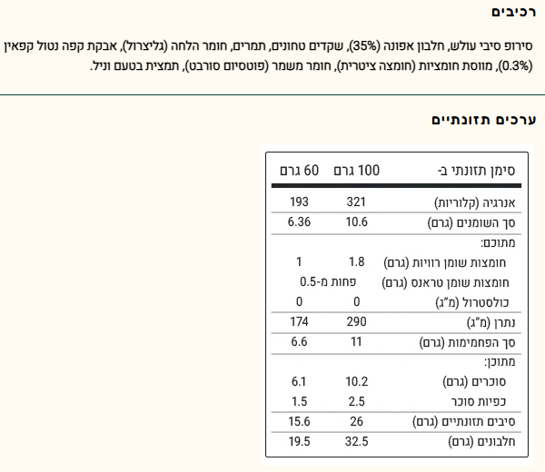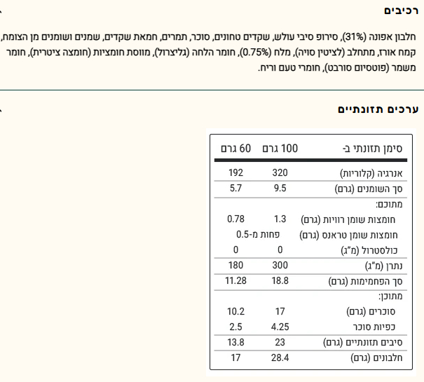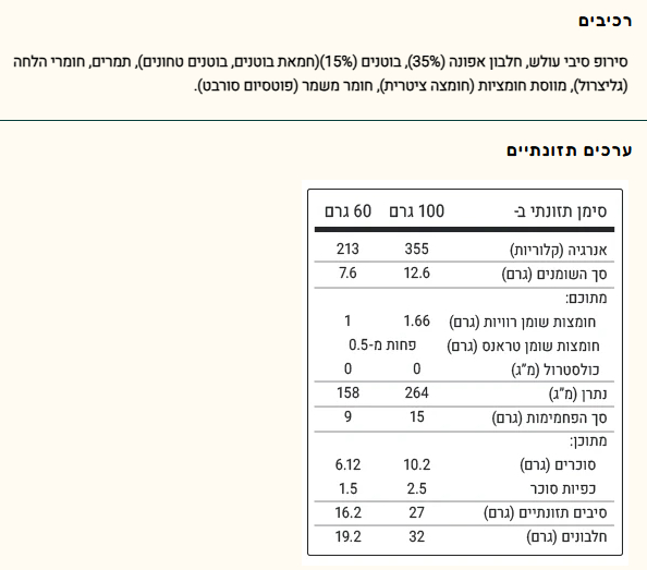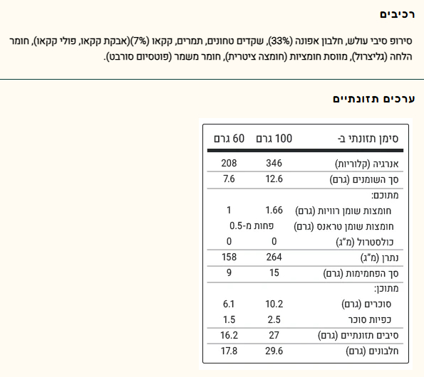 - כמות: 6 חטיפים, 60 גרם לחטיף