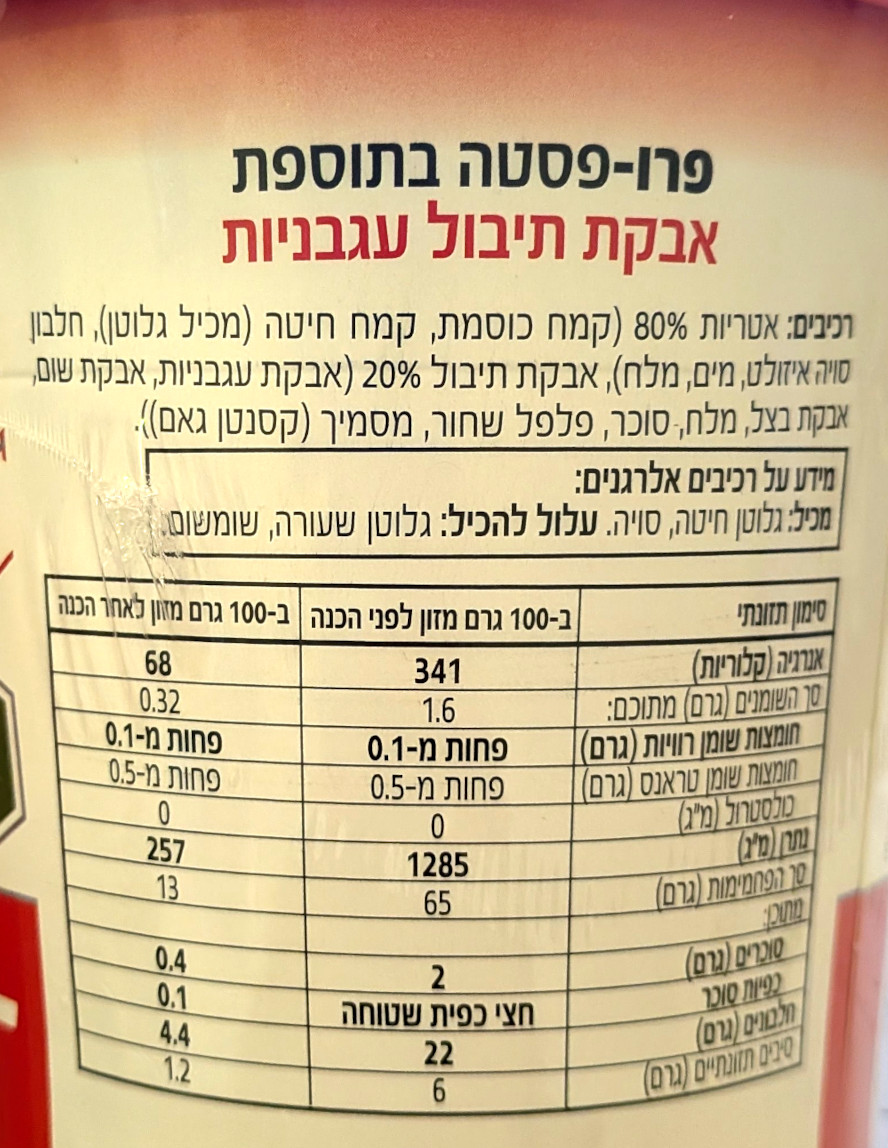 ארוחת פסטה עשירה עם 22 גרם חלבון באריזה