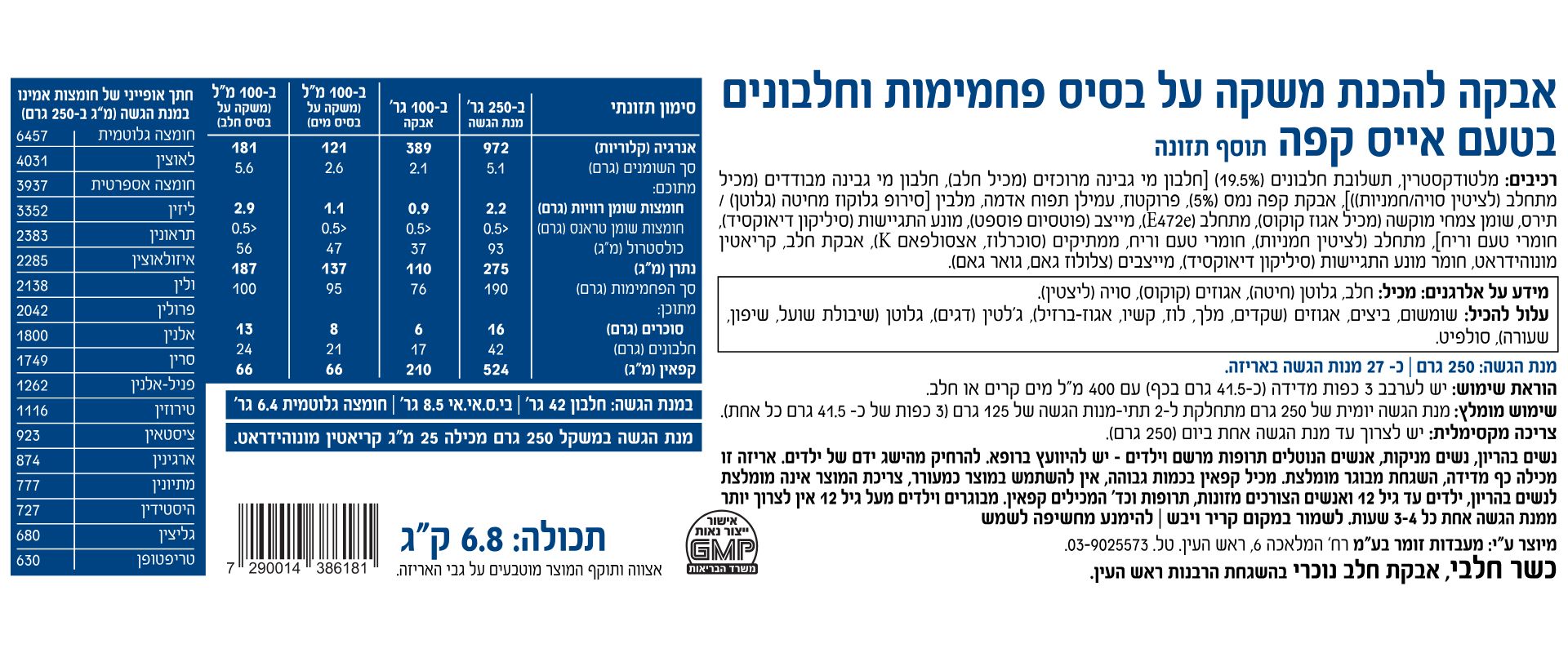 - כשרות: כשר אבקת חלב נוכרי בהשגחת הרבנות ראש העין
