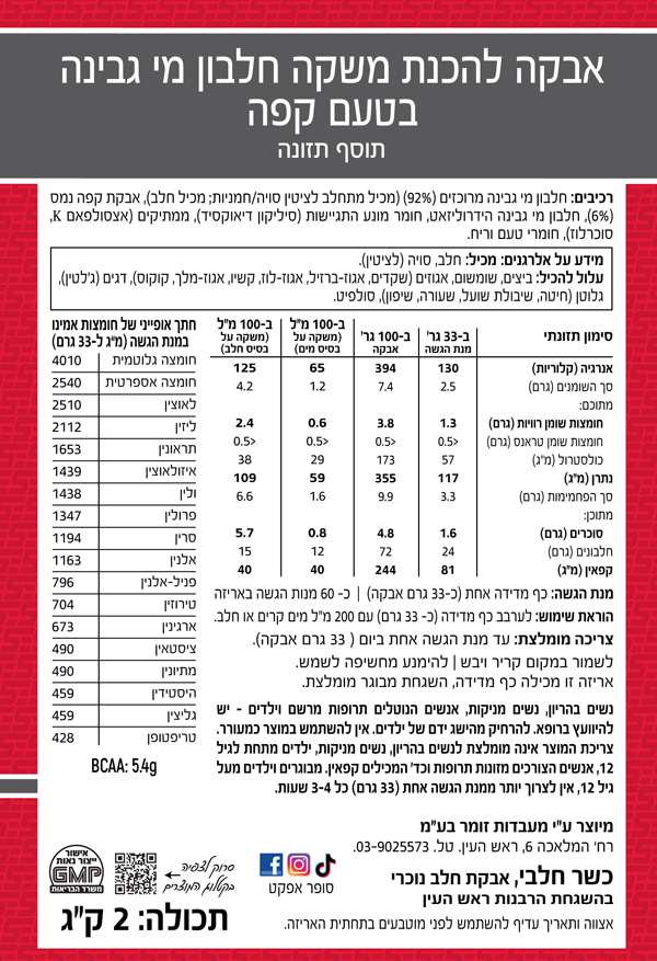 הודעה חשובה: אבקת החלבון הוקטנה והיא כעת במשקל 2 ק"ג במקום 2.3 ק"ג