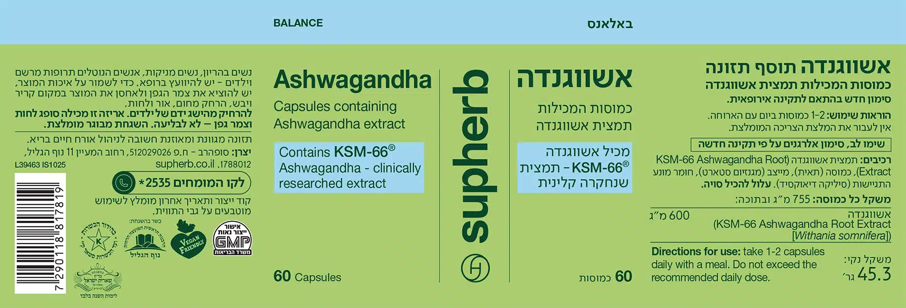 אשווגנדה KSM-66 היא תמצית שורש אשווגנדה אורגנית מרוכזת,