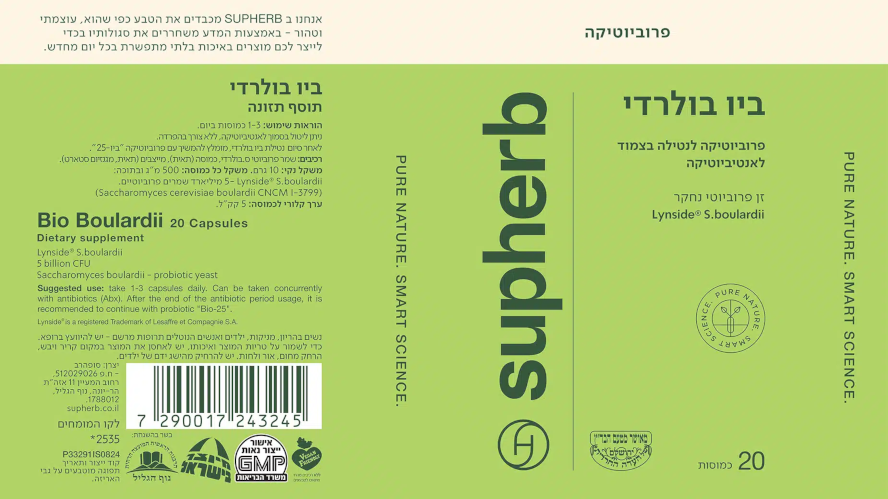 פרוביוטיקה המכילה את השמר הפרוביוטי ס. בולרדי במינון של 5 מיליארד בכל כמוסה.