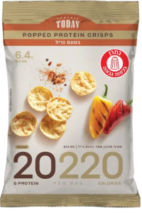 כל שקית צ׳יפס מגיע עם 20 גרם חלבון איכותי ורק 220 קלוריות