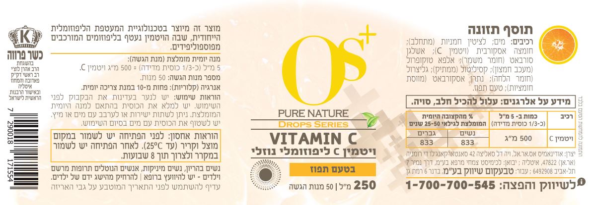 ויטמין C ליפוזומלי בנוזל בטעם תפוז טבעי