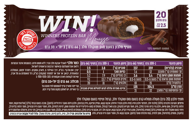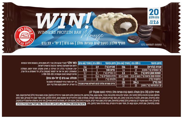 - כמות: 6 חטיפים, 66 גרם לחטיף